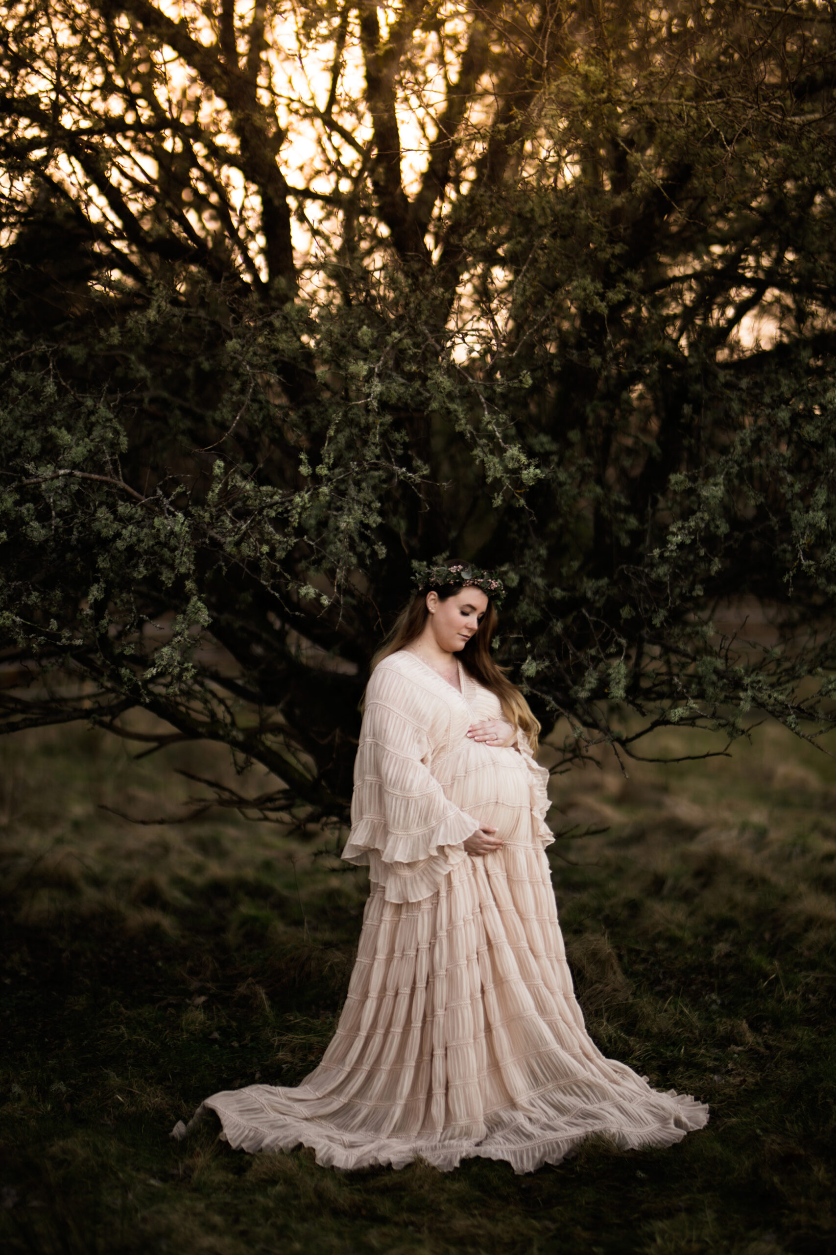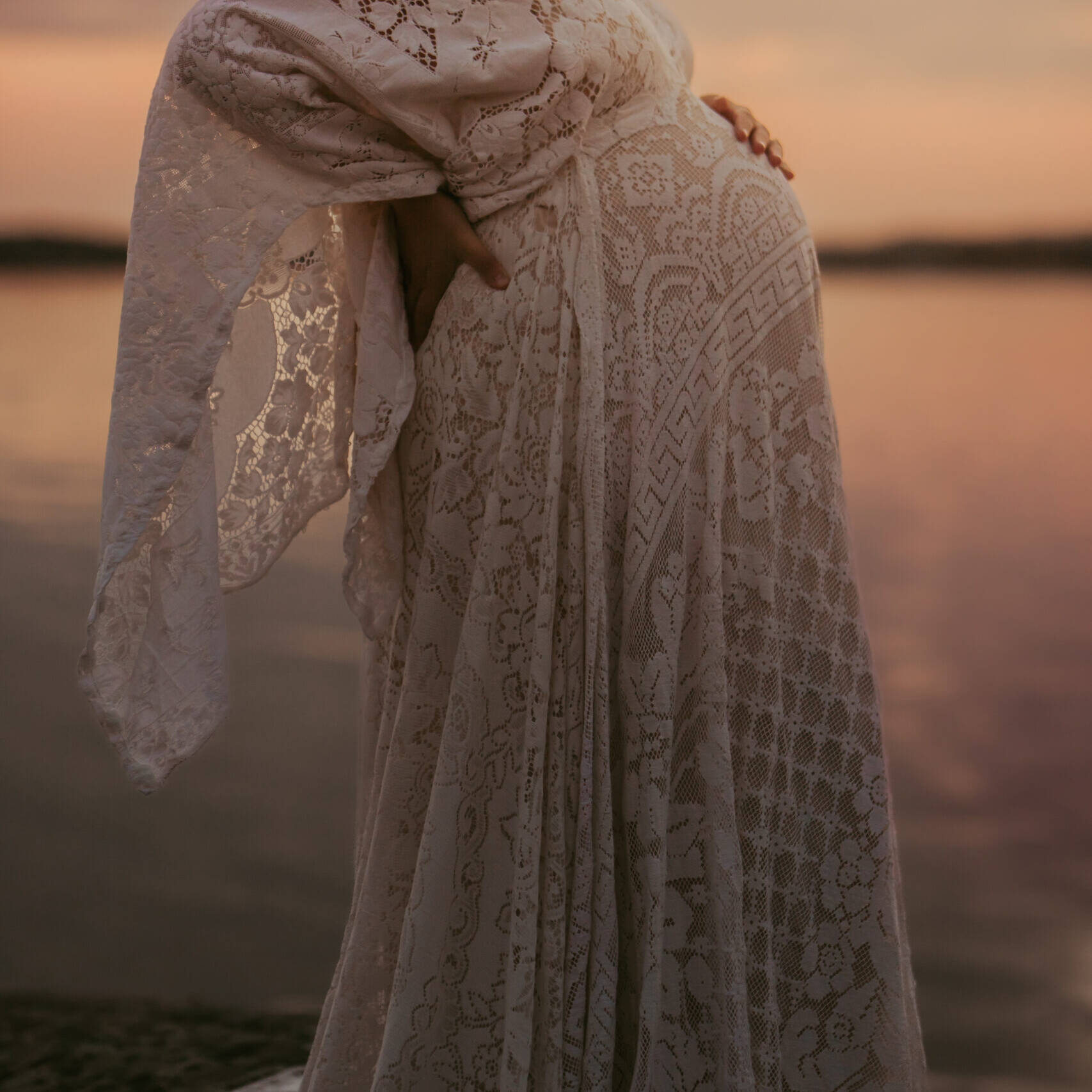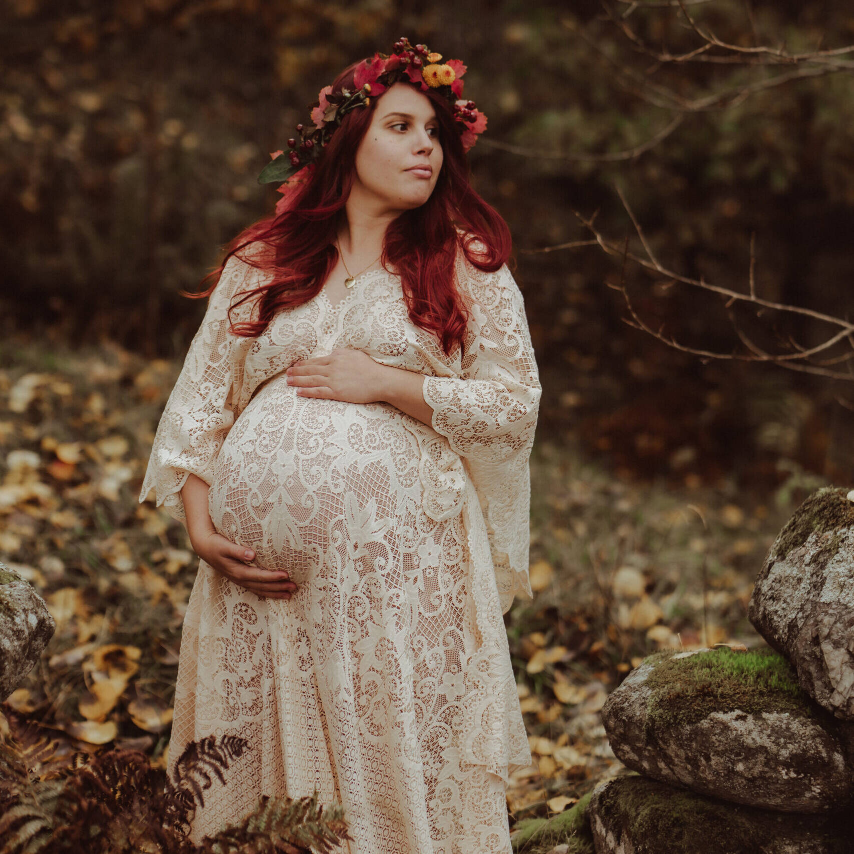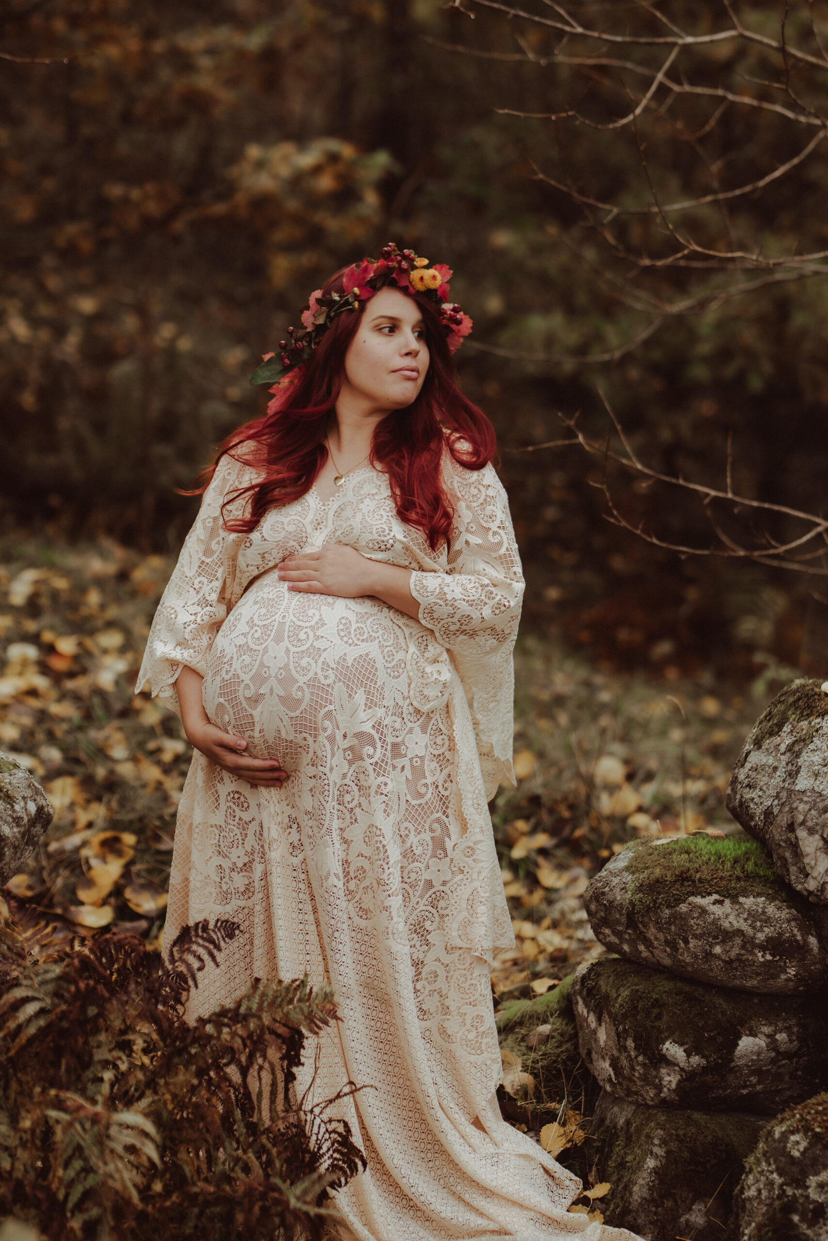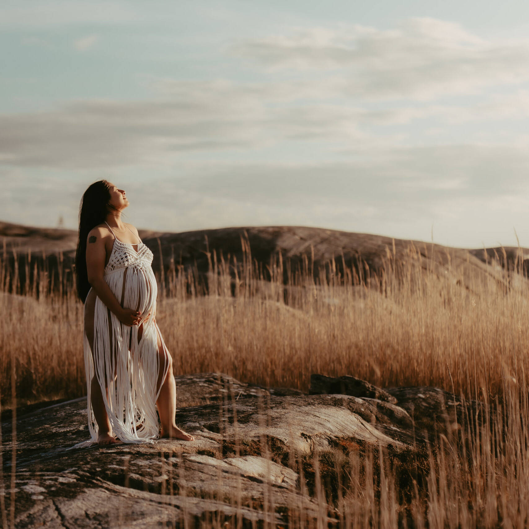 Ingen stress över kläder! Du får en gedigen guide på PDF med styling och klädtips. Jag har även en vacker gravidgarderob fylld med klänningar, plädar, virkade filtar och vackra tyger som du kan låna till din fotografering. Du kan kika på utbudet och välja något som känns bra för dig. På så sätt kan du slappna av och fokusera på din session.